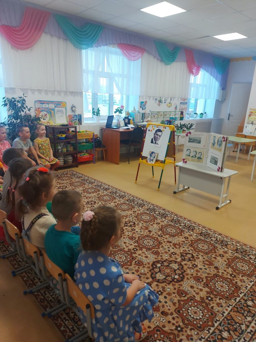 В старшей группе сегодня также состоялась беседа, посвященная жизни и творчеству поэта-героя Мусы Джалиля. Воспитатель: Салихова М.М.