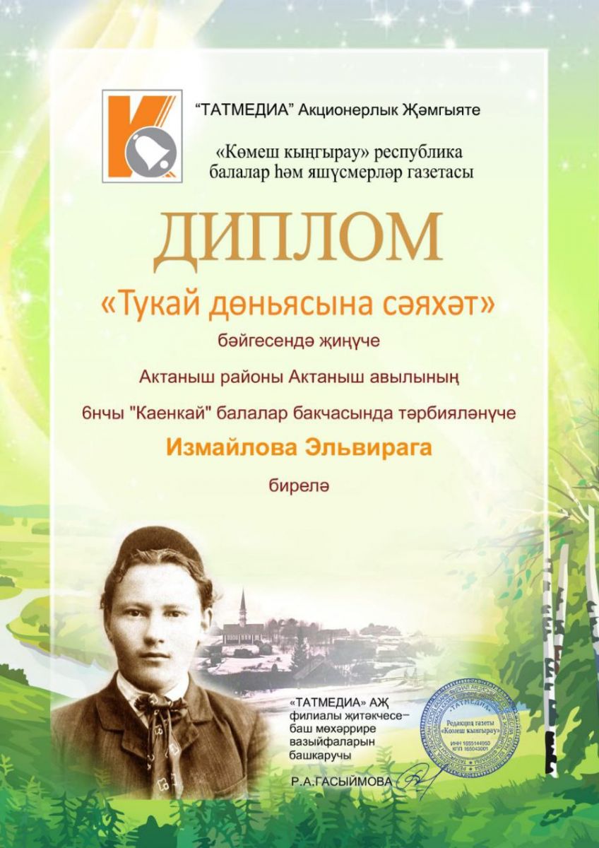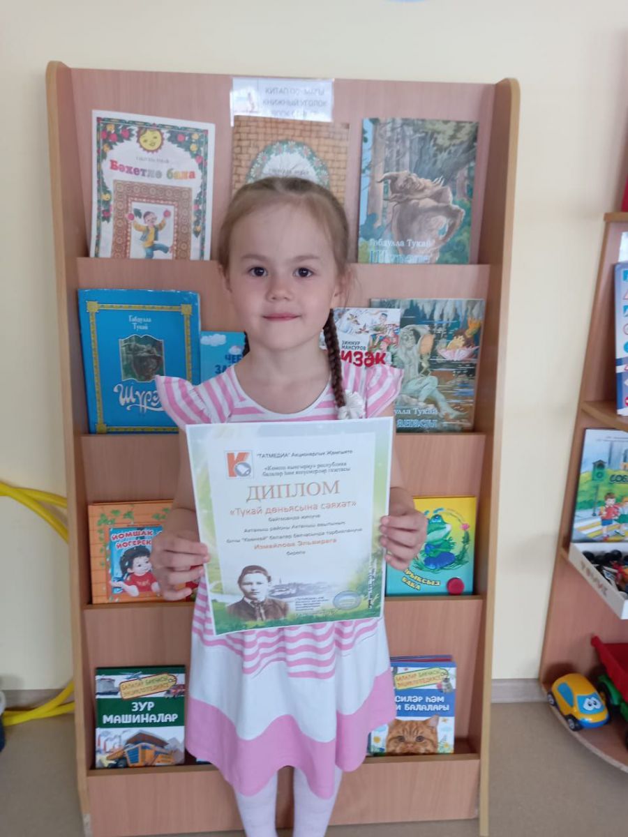 Измайлова Эльвира из подготовительной к школе группы победила в конкурсе "Путешествие в мир Тукая". Поздравляем!