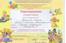 Шавалиев Амир (Халимова Р.Р.)приняли участие в республиканском конкурсе-выставке детского творчества "Мульти-пульти...волшебная страна" (по мотивам любимых мультфильмов) в рамках VII Республиканского конкурса исследовательских работ и проектов школьников "Дебют в науке" . Воспитанники и их педагоги были награждены сертификатами за творческий подход и активное участие в конкурсе-выставке, посвященном Году Кино.