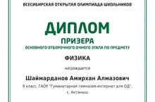 Гимназиябезнең 9 сыйныф укучысы Әмирхан Шәймәрданов физикадан