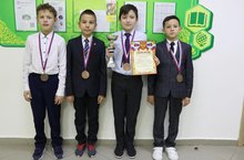 Башлангыч сыйныфлар укучы корпуста, дүшәмбе линейкасында, биредә белем алучы җиңүче егетләрне - Әмир Сафиуллин, Тимур Гафуров, Винир Идиатуллин, Раяз Фаттаховны(4 А сыйныф) хөрмәтләдек. -