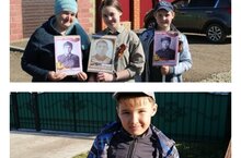 4Б класс укучылары Мәхмүтов Әхмәт әнисе, апасы белән һәм Сабиров Самир "Җиңү капкасы" акциясенә кушылдылар.