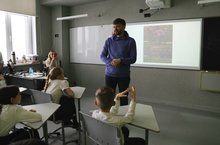 Тәрбия буенча эксперт, тәҗрибәле педагог-психолог Евгений Исаченко (Женя абый) бүген гимназиябездә кунакта. Иң элек, Евгений Исаченко 4 сыйныф укучылары белән очрашты. Яхшылык, яманлык, сайлау мөмкинлеге, дуслашу серләре буенча җанлы әңгәмә корды алар.