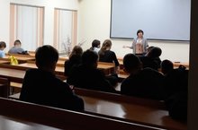 Очрашуга килгән студентларыбызны гимназиябез директоры Венера Хәмәтнәсыйх кызы Хәева сәламләде. Гимназиябез белән һәрчак элемтәдә яшәүче яшьләргә мөрәҗәгать итеп, теләк-фикерләрен җиткерде, тормышта үз һөнәрләренең осталары булуларын теләде.
