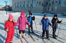 Гимназиябезнең 1Б сыйныф укучылары да физкультура дәресендә ачык һавада - сыйныф җитәкчесе Гөлназ Дильшат кызы Солтанова белән чаңгыда дөрес техника белән шуу күнекмәләренә өйрәнәләр.