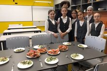 Бүген технология дәресендә 5В класс кызлары Яңа ел табыны өчен салат һәм бутербродлар ясарга өйрәнде. Үзләре дә сыйланды, егетләрне дә сыйладылар.