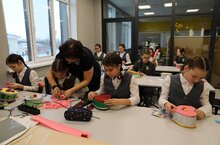 5А, 5Б, 5В сыйныф кызлары технология дәресендә, Лилия Глүс кызы белән бергәләп, бик матур шкатулка ясадылар. Зәвык белән бизәделәр, чәчкәләр дә ясадылар. Әниләргә бик матур бүләк!