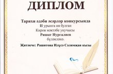 14 майда Чаллы шәһәрендә узган "Яшь башкаручылар IX халыкара фестиваль" конкурсында чыгыш ясап, 5 класс укучысы Сагбетдинова Сусанна, 3 нче дәрәҗә лауреат дипломына ия булды.
