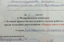 Наша ученица 3 класса Галимарданова Замира заняла 3 место в Межрайонном конкурсе "Лучшая проектно-исследовательская работа младших школьников 2020 "Первые шаги в науку"". Научный руководитель: Шайгарданова З.А. Поздравляем ее и ее руководительницу и желаем успехов в учебе!