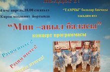 4 апрель көнне авыл мәдәният йортында "Тамчы" балалар бакчасы балалары, аның коллективы авыл халкына "Мин бит авыл баласы" дип исемләнгән концерт тәкъдим итте. Мәктәпнең киләчәге булган бу балалар бу көнне биеде, җырлары, шигырь сөйләде. Һәр ата-ана балаларга сокланып карап утырды, алар белән ял итте.