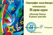 Безнең мәктәп "Йолдызлык-2019" конкурсының "Хореография - халык биюләре" номинациясендә "Кызлар биюе" белән III дәрәҗә лауреат булды! Алдагы конкурсларда да уңышлар теләп калабыз!