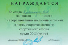 Команда нашей школы заняла 2 место на соревнованиях по лыжным гонкам в честь открытия зимнего спортивного сезона среди ООШ (младшая группа). Примите наши огромные поздравления! Удачи на остальных соревнованиях!!!
