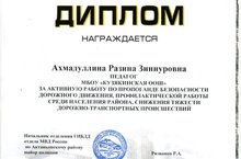 Тәрбия эшләре буенча директор урынбасары Ахмадуллина Р.З. юл йөрү кагыйдәләре буенча актив эшчәнлеге өчен Актаныш районы дәүләт бюджет учреждениесе "Юл йөрү куркынычсызлыгы" нан диплом һәм GPS-сәгать белән бүләкләнде. Котлыйбыз!!!. Киләчәк тә дә уңышлар телибез.