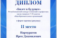 "Киләчәккә билет" республика конкурсында 9 класс укучысы Нармуратов Ирек Д. рәсем номинациясендә 2 урынны яулады.