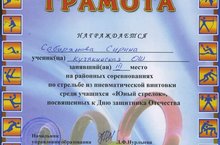 Ученица 9 кл Сабирянова С.С. МБОУ «Кузякинская ООШ» участвовала на районных соревнованиях по стрельбе из пневматической винтовки среди учащихся «Юный стрелок», посвященных к Дню защитника Отечества и заняла 3 место. Поздравляем!