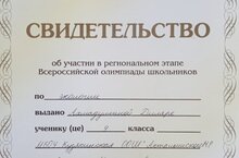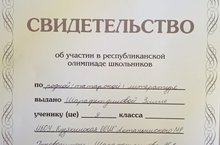 9 нчы сыйныф укучысы Шәрәфетдинова Зилия татар әдәбияты буенча республика олимпиадасында катнашу турында таныклык белән бүләкләнде