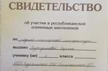 6 нчы сыйныф укучысы Газетдинова Зәринә татар әдәбияты буенча республика олимпиадасында катнашу турында таныклык белән бүләкләнде