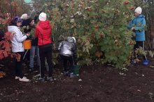 Трудовое воспитание. Ученики помогают в уборке осеннего урожая в школьном саду, вместе с учителями приводят сад в порядок.
