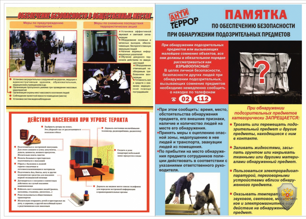 Памятка по обеспечению безопасности при обнаружении подозрительных предметов.