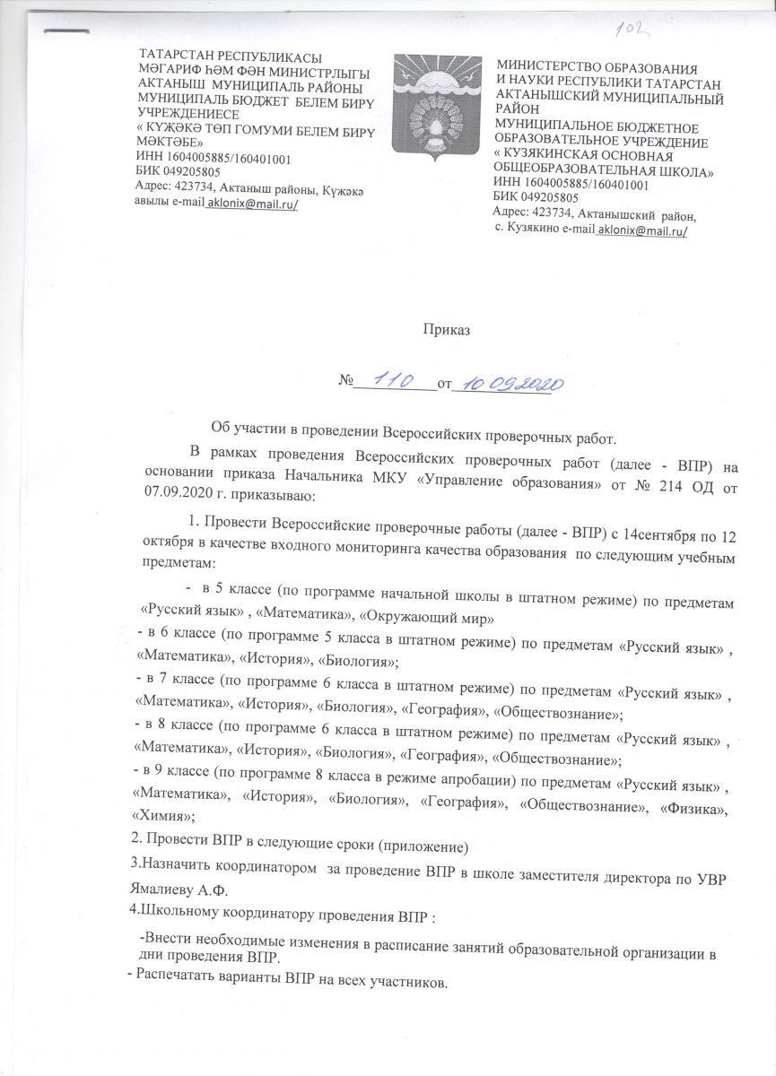 Приказ об участии в проведении Всероссийских проверочных работ1