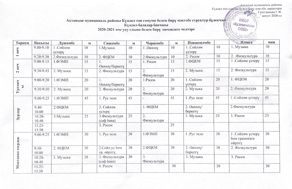 2020-2021 нче уку елына көндәлек режим