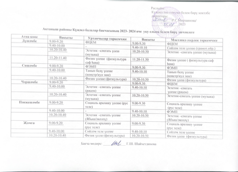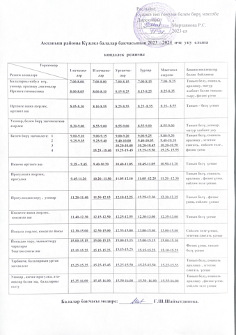 2023-2024 енче уку елына көндәлек режим