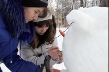 Не первый год в канун Нового года на школьном дворе появляются снежные фигуры. Оформлять школьный двор уже стало доброй традицией для учащихся школы. Вот и сегодня все вместе дружно приступили к строительству снежных фигур.