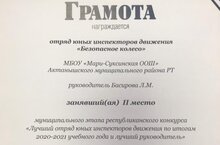 Отряд юных инспекторов движения «Безопасное колесо» занял 2 место муниципальном этапе республиканского конкурса