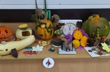 23 октября была организована выставка поделок "Осенние фантазии",в котором приняли участие ребята 1- 9 классов. Участники выставки удивили нас своей фантазией, оригинальностью и творческими способностями. Были представлены поделки и композиции из овощей и фруктов, шишек, листьев, цветов и других видов природного материала.
