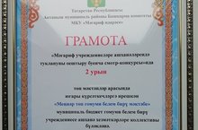 "Мәгариф учреждениеләре арасында туклануны иң яхшы оештыру буенча смотр-конкурсы" нда мәктәбебез мактаулы 2 нче урынны яулауга иреште. Зур җиңүебез белән чын күңелдән горурланабыз!У нас радостная весть...