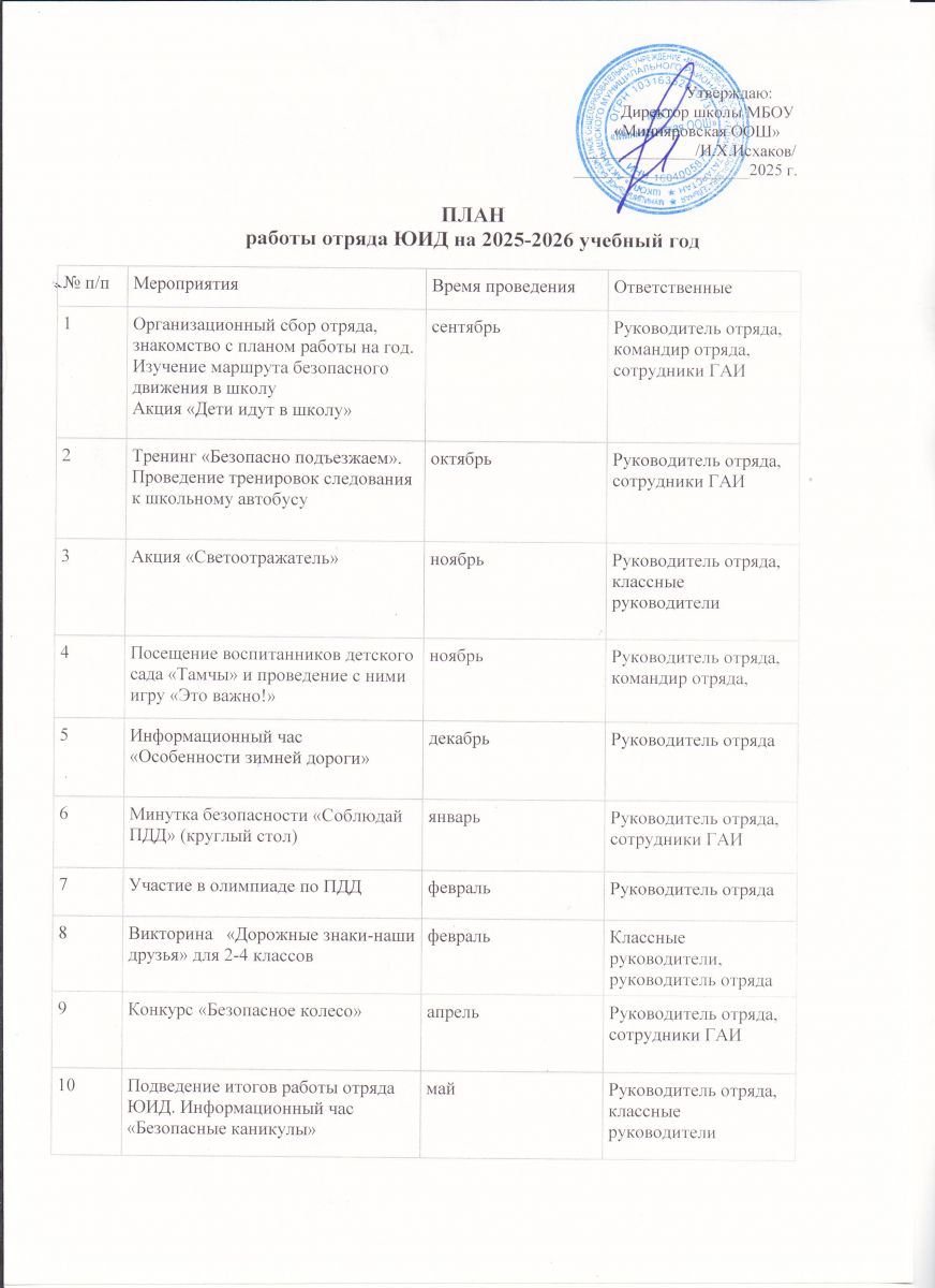 Приказ о создании отряда ЮИД "Светофор" 2025-2026 учебный год