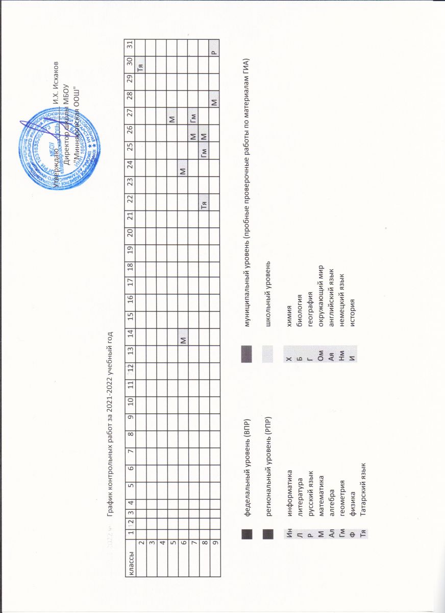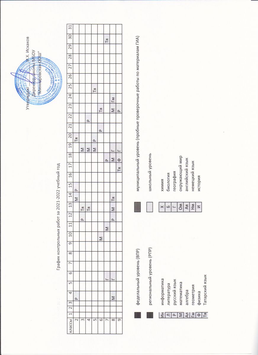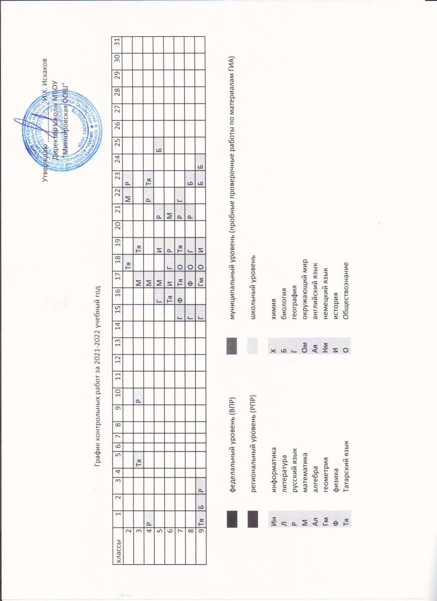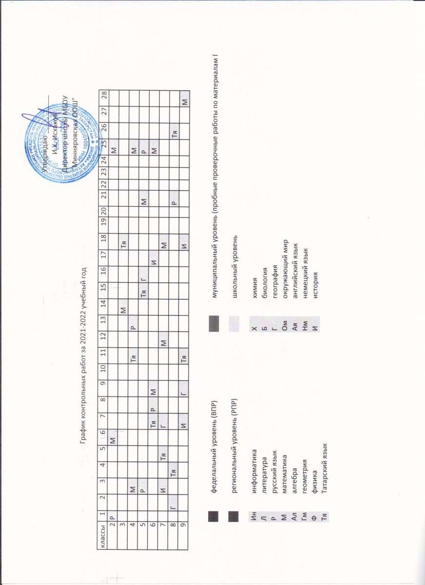 График контрольных работ МБОУ "Минняровская ООШ" на 2021-22 учебный год