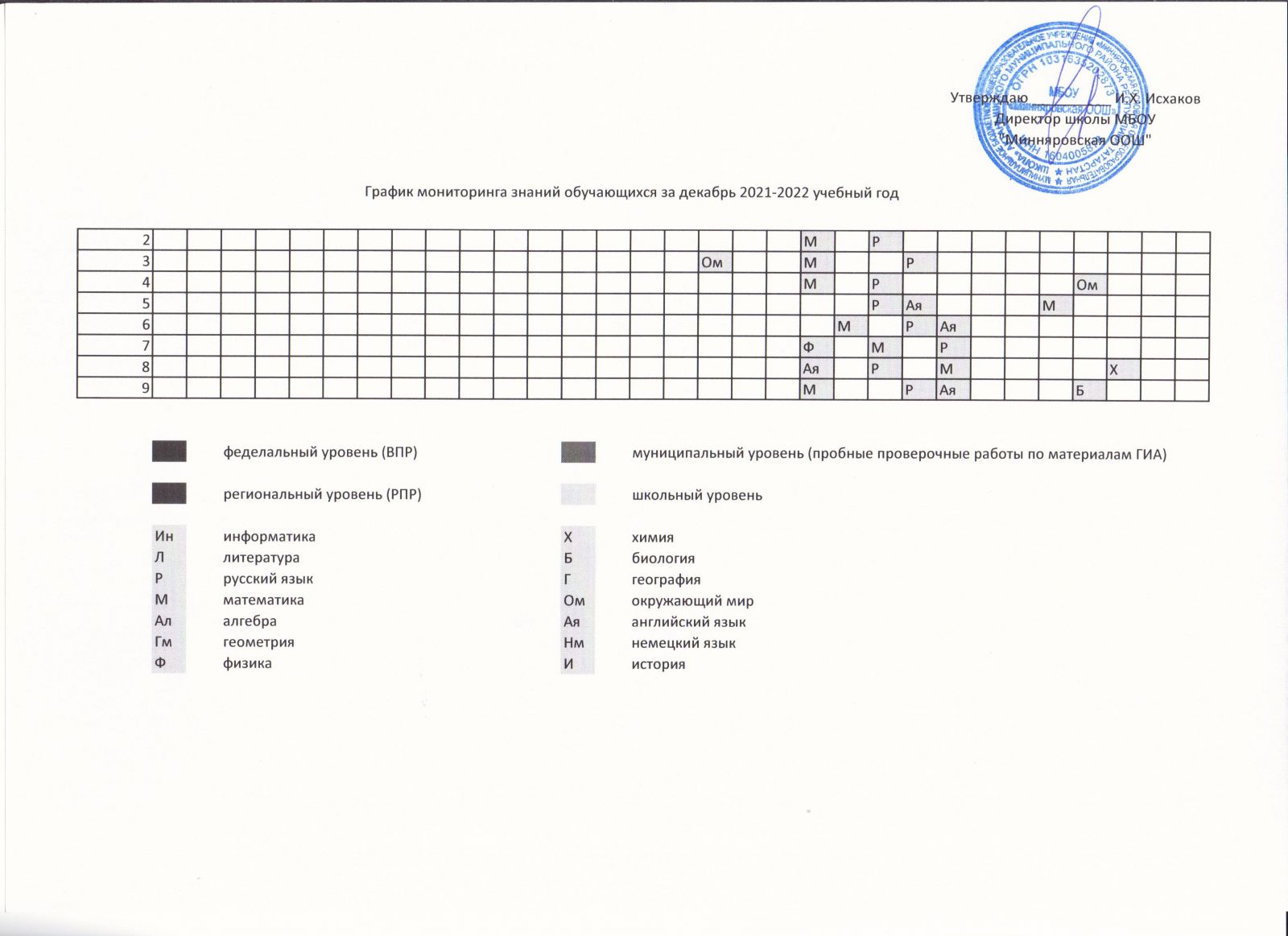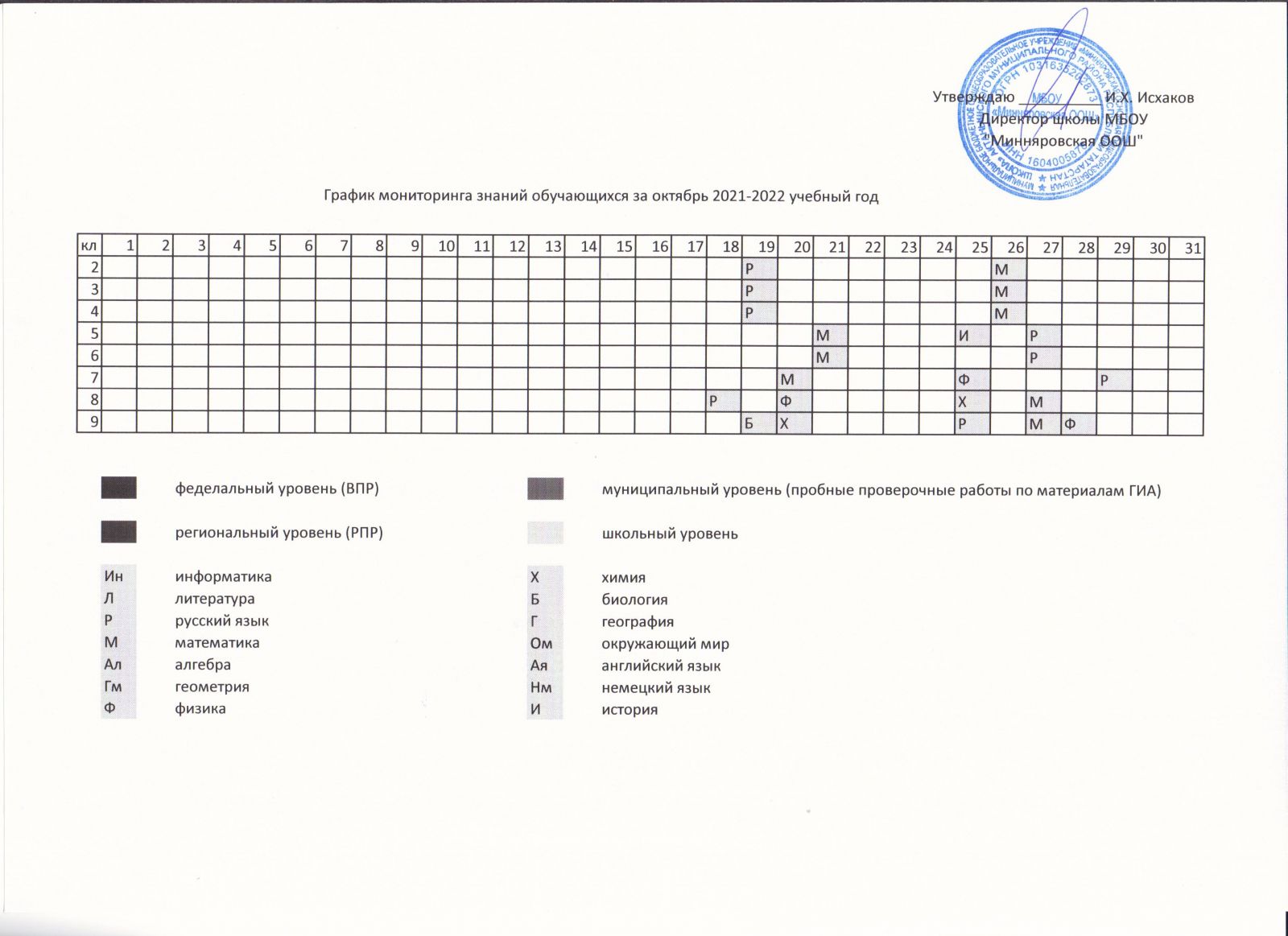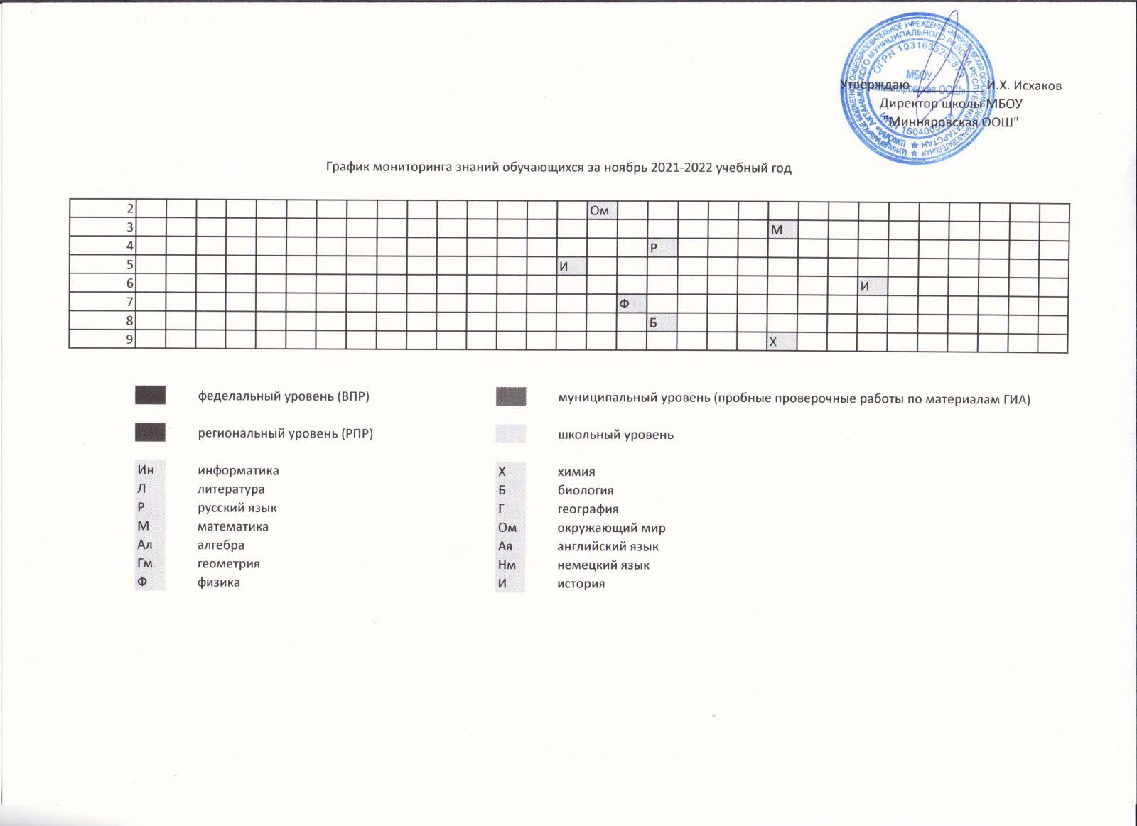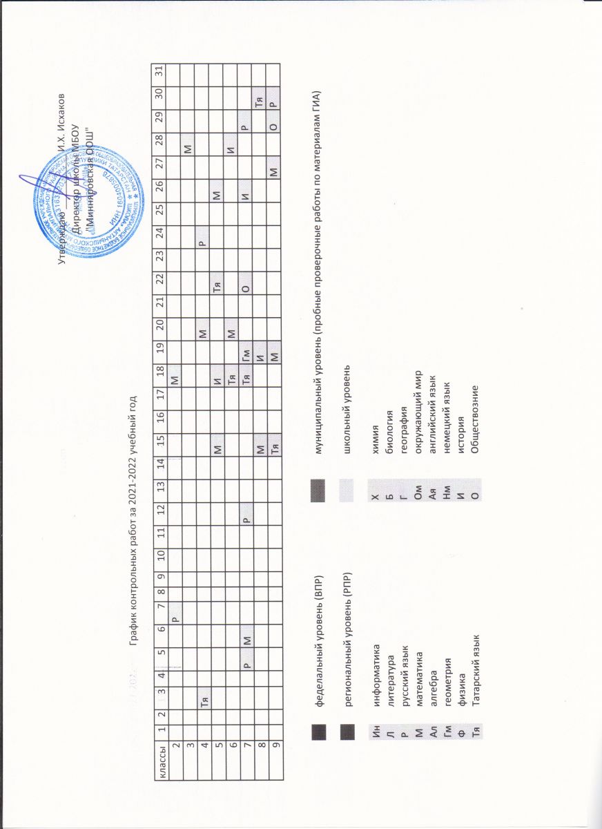 График контрольных работ МБОУ "Минняровская ООШ" на 2021-22 учебный год