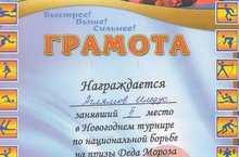 Кыш бабай призына татарча көрәш ярышында катнашып, 9 класс укучысы Әгъләмов Илдус 2 урынны алды.