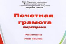 Рус теле һәм әдәбияты укытучысы Р.Н. Фәйзрахманова район мәгариф булегенең Мактау кәгазе белән бүләкләнде.