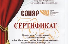«Сәйяр» балалар һәм яшүсмерләрнең республика театр фестиваленнән сертификат 10.04.2022