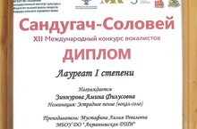 ШАРАФУТДИНОВА ДИЛЯРА - лауреаты 1 степениНаши талантливые солисты-вокалисты класса педагога ИСЛАМОВОЙ СИРИНЫ МУЛЛАЯНОВНЫ собрали целую коллекцию дипломов Лауреатов этого престижного конкурса: АХМАДИШИН РАНИЛЬ, ГИЛЯЗОВА ЗАЛИЯ - лауреаты 1 степени, ГАФУРОВА ЗУХРА, ШАКИРОВА АМАЛИЯ - лауреаты 2 степени, ШАЙМАРДАНОВА РИАНА - лауреат 3 сепени.
