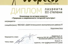 Рәсем бүлеге укучылары Касымова Айзилә, Нуруллина Алсу укытучылары Ләйлә Галимова җитәкчелегендә беренче тапкыр сәнгать тарихы буенча олимпиадада катнаштылар. Нуруллина Алсу III нче дәрәҗә лауреат буды.Котлыйбыз!