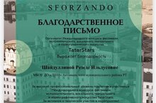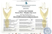 Халыкара музыкаль премия "SFORZANDO" конкурсында фортепиано бүлеге укучыларыбыз Вәлиев Юныс-Шәрифуллина Аделя III нче дәрәҗә лауреат булдылар. Укытучылары Резеда Шәйдуллина Рәхмәт хаты белән бүләкләнде. КОТЛЫЙБЫЗ!
