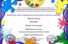 Альметьевского муниципального района Республики Татарстан совместно с МБОУДО «Детская художественная школа Nº1» Альметьевского муниципального района Республики Татарстан МБОУДО «Детский технопарк «Кванториум» - Дом пионеров» г. Альметьевска Республики Татарстан 10 марта 2025 года организовало Всероссийский конкурс нетрадиционных техник рисования «БЕЗ КИСТИ И КАРАНДАША»..Наши дети,учащиеся класса педагога ГАЛИМОВОЙ ЛЕЙЛЫ РЕНАРТОВНЫ активно приняли в нём участие и добились прекрасных результатов! Лауреаты I степени :ЗАКИРОВА ЗАЛИНА и ЯХИНА ЗИЛЯ, Лауреат II степени: ЗАМАНОВ ФАРХАТ, Лауреат III степени:ШАЙМАРДАНОВА АЙЗИЛЯ. СЕРДЕЧНО БЛАГОДАРИМ ДЕТЕЙ И ПЕДАГОГА!