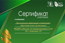 Дети старшей группы нашего детского сада (под руководством воспитательницы Венеры Фидарисовны) приняли участие в республиканском конкурсе "Эколидер". Награждены сертификатом. Молодцы!