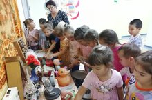 В нашем саду работает уголок музея "Советское детство". Дети с интересом знакомятся с экспонатами музея.
