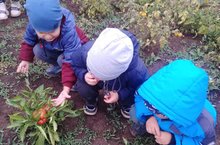 Бакчабызның тәҗрибә участогында балалар җәй буе бик күп яшелчәләр үстерделәр. Инде көз җиткәч, бакчадан мул итеп уңыш та җыеп алдылар.