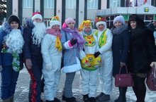 Районыбызның үзәк чыршы мәйданында шундый күңелле. Чөнки "Кар бабайлар" парады, "Коймак ярминкәсе" гөрли. Барлык оешмалардан да кар бабайлар килеп, үзара ярыштылар, күңел ачтылар. Безнең бакчабыз кар бабйлары бик үзенчәлекле булды, чөнки алар татар милли алъяпкычыннан һәм түбәтәеннән киенгәннәр иде.
