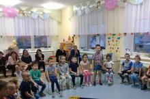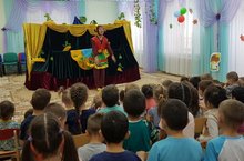 Сегодня у нас в гостях был театр кукол "Алина" из города Альметьевск, с музыкальной сказкой, с большими куклами "Путешествие льва Бонифация в Африку". Сказка была из серии Познавательный мир Африки. Дети увидели много старых знакомых персонажей, таких, как Попугай Кукарача, Золотая Рыбка, Бармалей, Лев Бонифаций и другие. Дети были в восторге!