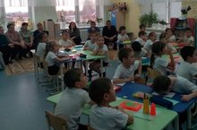 Бүген, зурлар "В" төркемендә әти-әниләр өчен "Ачык ишекләр көне" үтте. Тәрбиячеләр Мазнавиева Миләүшә Роберт кызы интегральләшкән шогыль (сөйләм үстерү һәм ФЭМП), Газизова Эльвира Дилшат кызы ябыштыру эшчәнлеген ата-аналарга күрсәттеләр