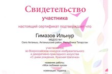 Җир шарында "Кызыл Калфак" әкиятен белмәгән кеше юктыр ул. Ә менә шушы көннәрдә әкият кызының туган көне икәнен күпләр белмидер әле. Ә безнең бакча балалары беләләр. Алар Кызыл Калфакны котлап оештырылган интернет-конкурста катнаштылар. Шарипов Раяз (тәрбиячесе Саетова Н.Н.), Сабирова Айзирәк (Исламова З.З.), Набиев Исламның (Газизова Э.Д.) рәсемнәрен, Гимазов Илнурның (Харисова Л.М,) әнисе белән берлектә эшләгән Кызыл Калфак курчагын жюри уңышлы дип табып сертификат белән бүләкләде. Бакчабыз балаларын зур уңышлары белән, ә инде Кызыл Калфакны туган көне белән чын күңелдән котлыйбыз!