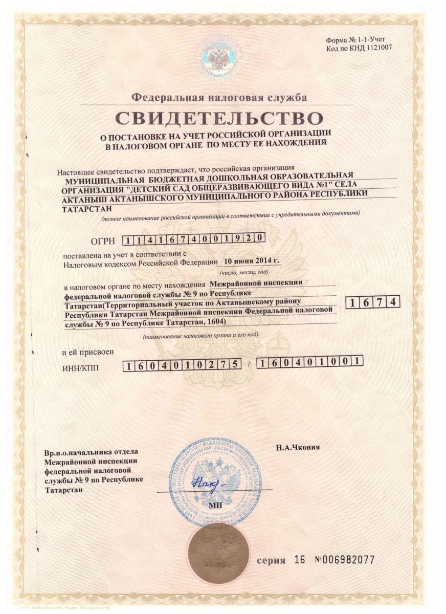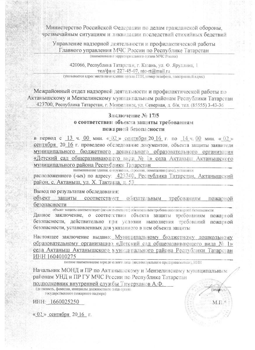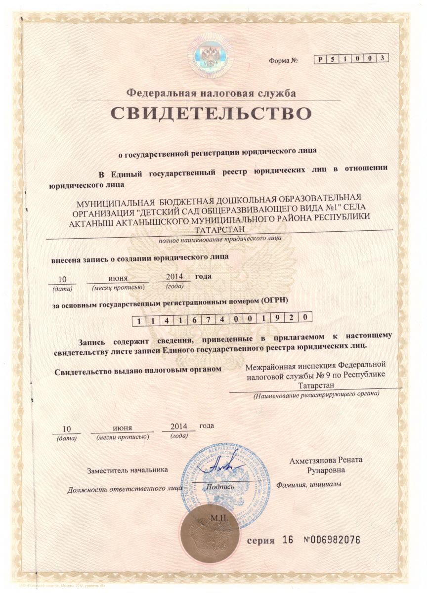 | Короткое название: | МБДОО «Детский сад общеразвивающего вида №1» с.Актаныш |