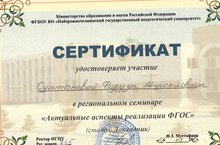 Педагог ДО Султанова Фируза Марселовна приняла участие в региональном семинаре «Актуальные аспекты реализации ФГОС» в ФГБОУ ВО «Набережночелнинский государственный педагогический университет»