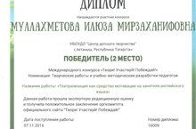 Педагог дополнительного образования по английсскому языку Муллахметова Илюза Мирзаханифовна заняла 2 место в Международном конкурсе "Твори! Участвуй! Побеждай!"